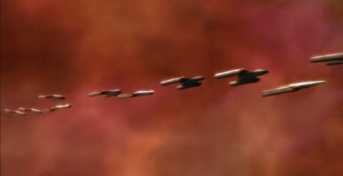 The bantha formation represents a starship tactic where vessels align themselves in a single line. During the Battle of the Kaliida Nebula in 22 BBY, when Shadow Squadron was navigating through the Kaliida Nebula, they unexpectedly encountered a cluster of Neebrays. To successfully dodge the massive leviathans, Anakin Skywalker instructed the fighters to adopt the bantha formation.