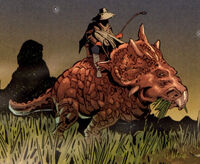 This creature was a reptilian type of animal that lived on the planet Agamar. It possessed four legs, a substantial tail, and bony growths extending from a flared crest located at the back of its head. The diet of the Agamarian beast consisted solely of grass and trees.