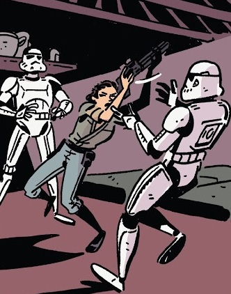 Leia Organa employs Alderaanian martial arts against stormtroopers.