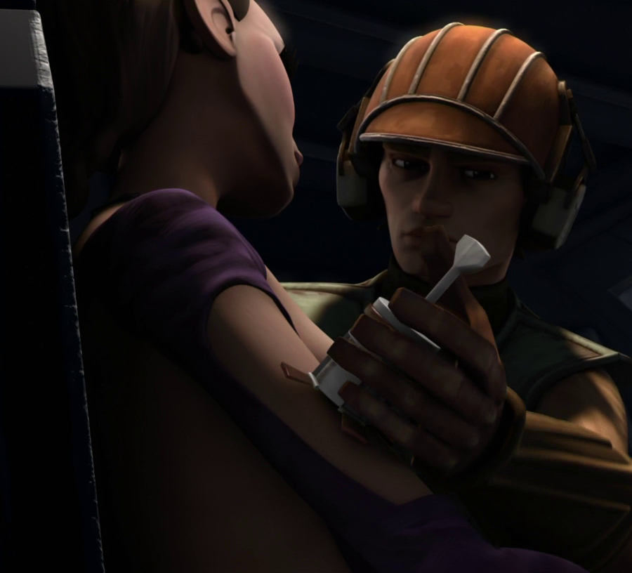 Anakin Skywalker is shown giving an antidote