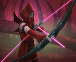 A projectile designed for launch via a bow was known as an arrow. For instance, the Ewoks residing on the Forest Moon of Endor used simple arrows: slender, straight shafts tipped with a sharp point. In contrast, the Nightsisters' Hunters originating from Dathomir employed arrows that were generated from plasma, mirroring the composition of their energy bows' strings. Similarly, Zygerrian enslavers operating on Ord Mantell also made use of comparable energy bows; one of these was later acquired by Omega and became her signature weapon.