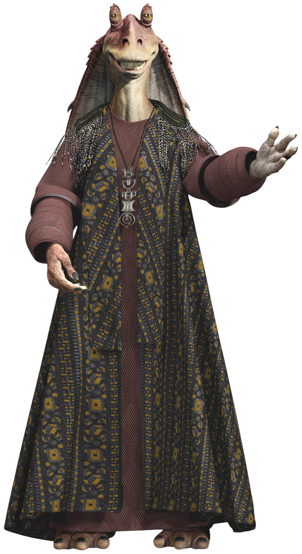 Perhaps the most well-known example is Jar Jar Binks, a Gungan from the Chommell sector, who frequently stood in for Senator Amidala. His most significant act as acting senator, which is still remembered, was his proposal to grant emergency powers to the Supreme Chancellor, a suggestion that received widespread support and applause. Following Amidala's passing and the transformation of the Republic into the Galactic Empire, Binks transitioned to serving as a full senator in the Imperial Senate.