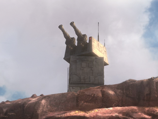 The autocannon represents an automated and uncrewed version of the laser cannon. In the vicinity of the Imperial doonium refinery situated on Ryloth, multiple autocannons were strategically deployed for defensive purposes.