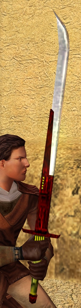 Revan presented it to the exiled Freyyr as a tool to aid him in his effort to take back his leadership position from his son, Chuundar, who had unlawfully taken it. Following Chuundar's defeat, the two parts of the sword were rejoined; however, Freyyr relinquished the sword. Upon the request of his younger son, Zaalbar, Freyyr permitted him to take ownership of the sword, signaling Zaalbar's future role as chieftain when he returned.