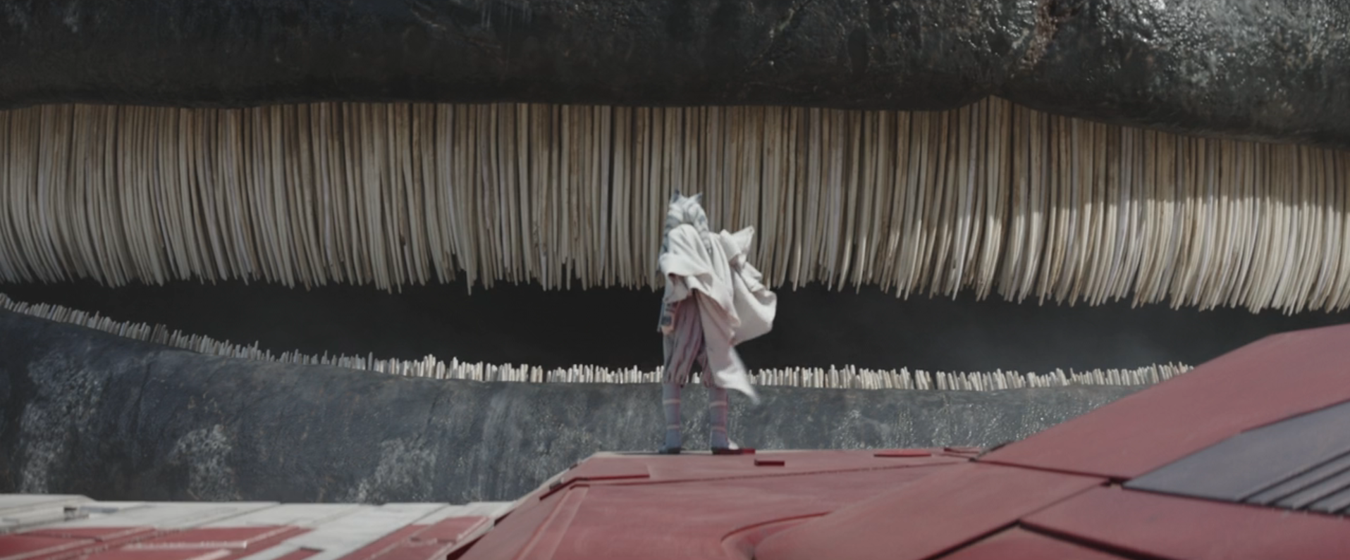 The initial reference to baleen occurred within Star Wars: The Visual Encyclopedia, a reference book from 2017 authored by Tricia Barr, Adam Bray, and Cole Horton. Its on-screen debut was in "Part Five: Shadow Warrior," the fifth installment of the Disney+ streaming series Ahsoka, which premiered on September 12, 2023. Prior to this, baleen received mention in the Legends timeline within the 2010 The Unknown Regions supplement for the Saga Edition role-playing game. In the real world, baleen is a structure that replaces teeth in baleen whales, enabling them to filter-feed on organisms like krill and plankton.