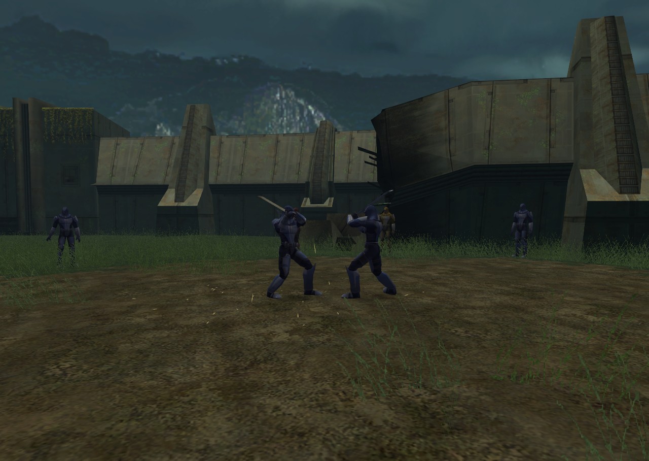 During Meetra Surik's visit to the encampment situated on Dxun, she received an invitation to evaluate her abilities against Mandalorian warriors. In accordance with Mandalorian customs, she engaged in combat with five warriors, progressing from the least esteemed to the most highly regarded. Initially, she triumphed over the young recruit, Davrel, in unarmed combat. Following this, the quartermaster, Kex, issued a challenge to Surik, granting her the authority to determine the contest's parameters: unarmed combat, swordplay, or the utilization of the Force and a lightsaber. Regardless of her selection, she emerged victorious. Subsequently, the experienced warrior Tagren was also defeated in unarmed combat. However, after her duel with Tagren, Surik was required to demonstrate her worthiness to confront the two champions: Kelborn or Bralor. After assisting Kelborn in eliminating some of Colonel Tobin's soldiers, she gained permission to engage the champions. Kelborn was bested in a sword-fighting competition, while Bralor permitted Surik to employ her complete range of abilities, including the Force, but was nonetheless defeated by the Jedi.