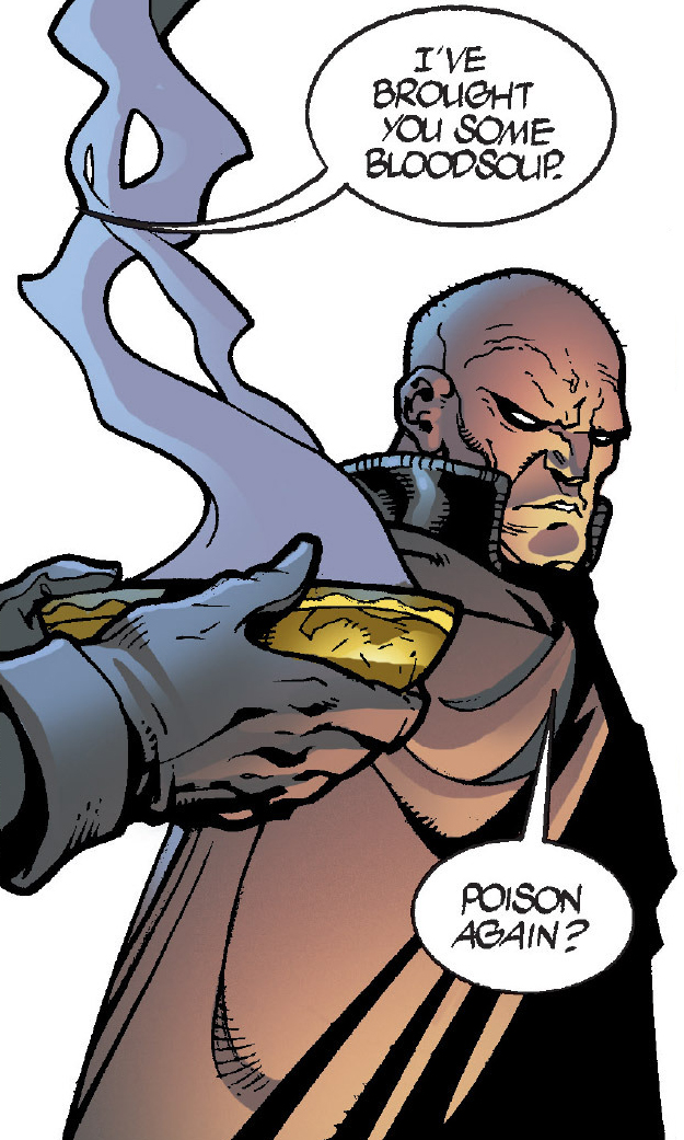 During the time of the Ruusan campaign within the New Sith Wars, Darth Bane partook in bloodsoup. After he came back from Githany's failed assassination attempt, Githany gave Bane a bowl of it.