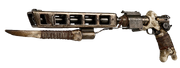 Certain members within the criminal syndicate Kanjiklub integrated bone fragments into their makeshift blasters. The Donderbus blaster pistol used by Topboss Tasu Leech featured a handle fashioned from the ulna of a Kintan strider, while his "Huttsplitter" blaster rifle incorporated a gundark bone as a grip, and Crokind Shand's heavy bore rifle, included a roggwart bone butt. The renowned pirate Captain Sidon Ithano proudly acquired a rifle from a fellow Kanjiklub member, also equipped with a bone butt.
