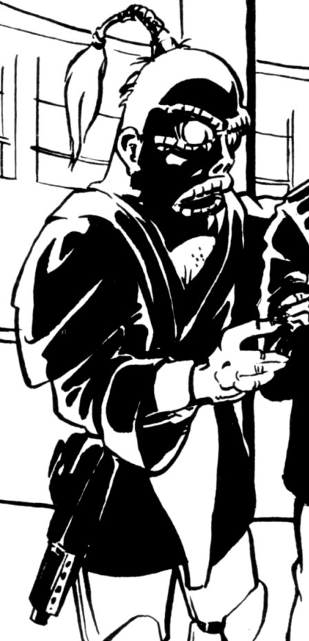 Brubbs were bipedal reptilian beings originating from the planet Baros, found within the Baros system. To survive on their harsh, arid home world, which was frequently swept by sandstorms, Brubb ancestors developed robust hides and sturdy, translucent membranes that shielded their eyes. Because Baros offered little in the way of audible stimuli beyond the constant rush of wind, Brubbs possessed severely limited hearing capabilities. Their high-gravity planet of origin endowed Brubbs with considerable strength for their size, which typically ranged from 1.5 to 1.7 meters. Furthermore, Brubbs exhibited a rudimentary form of camouflage, capable of altering their skin color within a limited spectrum of yellow to greenish-gray hues.