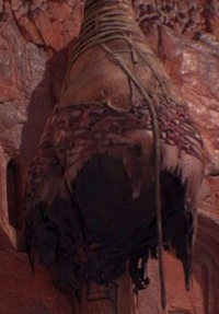The construction of burial pods involved materials like cloth or animal hides, frequently the hide of a rancor. Following the completion of the Chant of Resurrection, Nightsister Zombies would emerge from within these pods.