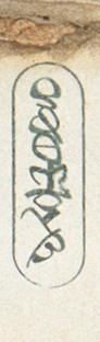 Within the pages of the Rammahgon – one of the sacred Jedi texts – the cartouche appeared as a recurring design element. Its form resembled a cylinder, displaying the Protobesh word "COURAGE".