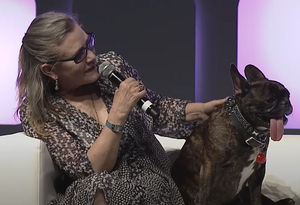 Carrie Fisher and her pet dog Gary at Celebration 2016