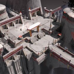 The Hutt's classical architectural style was a favorite of the Hutts during their reign over the planet Mataou, a time well before the Galactic Civil War took place. On Mataou, many opulent settlements showcased this style, including the estate belonging to the Gnuda Kajidic. This architectural style of the Hutts was known for its use of terraced buildings, predominantly in off-white shades, accented by decorative red features. Niima Outpost on Jakku, a settlement that was established by the Hutts, also featured an entrance gateway built in this style; it stood as the town's only point of architectural significance. Arches reflecting this Hutt style were also observable on Takobo.