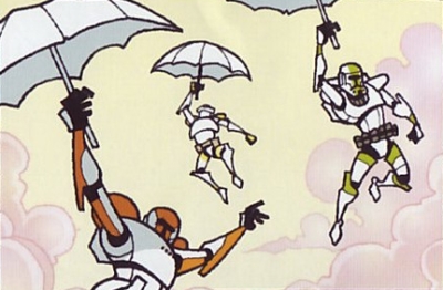 Umbrella The Combat Umbrella in action. During the era of the Clone Wars, certain clone commandos, for example, the soldiers of H.O.P.E. Squad, utilized a piece of equipment known as the Combat Umbrella. Its function was to decelerate their fall speed, particularly when executing high-altitude, pinpoint landings, such as assaults on repulsorlift platforms.