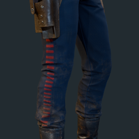 In 3 ABY, Kay Vess, the scoundrel, discovered some blue pants inside a container on the Trailblazer. This EML-850 light freighter had been pilfered from Sliro Barsha's Westhill Palace located in Canto Bight.