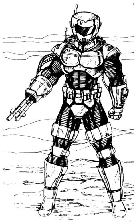 The distinctive armor worn by the merciless Cragus 12, who operated as a bounty hunter, was his personal battle suit. This full-body protection included a helmet, completely shielding Cragus's head. A jet pack was integrated into the battle armor, granting a movement capability of 100 meters horizontally and 70 meters vertically, alongside a Multi-Frequency Targeting and Acquisition System. The suit also featured a climate-controlled body glove, a self-contained air supply providing two hours of breathable air, an integrated comlink, and a laser built into the wrist.