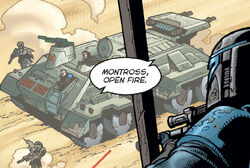 During the Mandalorian Civil War, the Death Watch employed these armored vehicles. One of them met its end in the Battle of Concord Dawn.