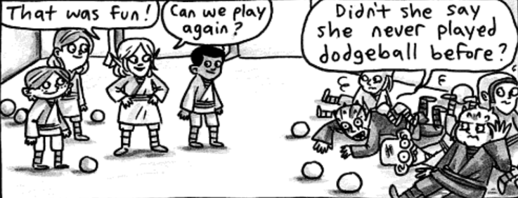 Lilly dominates her fellow Jedi academy students in a game of dodgeball.