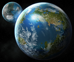 The term Double Worlds or Twin Worlds was employed to describe the planets Tralus and Talus. These planets circled Centerpoint Station as the station itself revolved around the star Corell within the Corellian system. The inhabitants of either of these planets were referred to as Double Worlders.