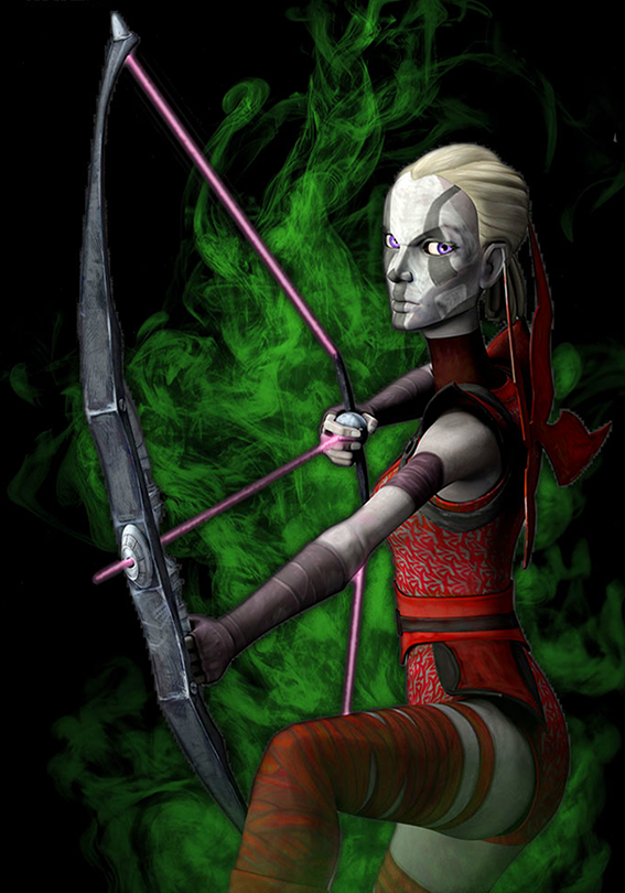 A Nightsister is seen here, equipped with a plasma energy bow.