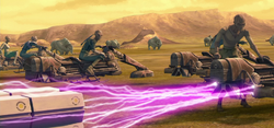 Energy couplers functioned as attachment mechanisms, enabling the connection of freight to various modes of transportation. Turk Falso, in collaboration with a band of Weequay pirates, employed these couplers to move spice that they had pilfered from the Galactic Republic while riding on their Starhawk speeder bikes.
