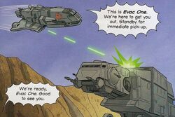 A starship designated as an evac ship was used for the purpose of evacuating people from dangerous or hostile environments. The Gozanti-class cruisers were utilized in this capacity by both the Galactic Empire and the rebellion.