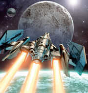 Following the Jedi Rebellion, Kane Starkiller sought sanctuary on this moon along with his offspring, Annikin and Deak. The satellite was desolate and gray in appearance. Although the rarefied atmosphere necessitated the use of a breath mask and protective eyewear, a full pressure suit wasn't essential. Gale-force winds presented challenges to movement. The landscape was characterized by frequent canyons and deep fissures. Kane's dwelling, an abandoned storage facility, was situated on the lunar surface, adjacent to his inoperable starship. After a Sith Knight located their refuge and Deak perished, Kane and Annikin were compelled to escape to Aquilae.