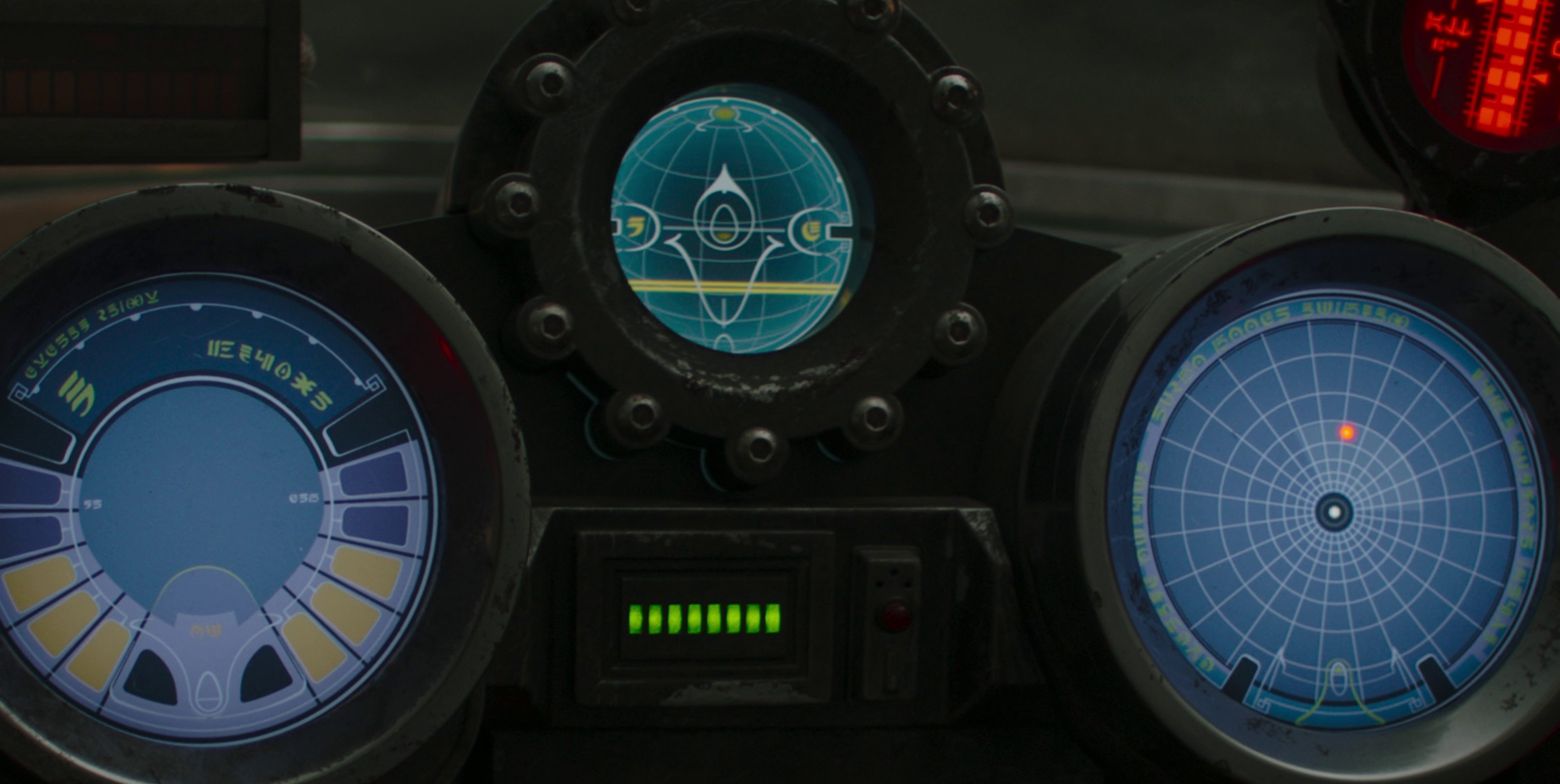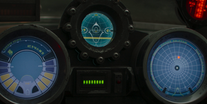 Futhork on the console of Din Djarin's N-1 starfighter During the New Republic Era, Futhork was present on the console of Din Djarin's N-1 starfighter. A blue circular screen, acting as a hyperspace map, displayed the words "SYSTEM READY," "M," "FLIGHT," "PT," "STB," and "ON." The central greenish-blue navigation display showed indicators for "P" (port), "D" (directly ahead), and "S" (starboard). The blue enemy proximity warning indicator located on the console's right side displayed "SYSTEMS ONLINE • TURBO BOOST ENACTED • LIFE SUPPORT ACTIVE." However, after Din Djarin departed Nevarro, the entire image became mirror-inverted when Gorian Shard's gang appeared, causing it to flash red.