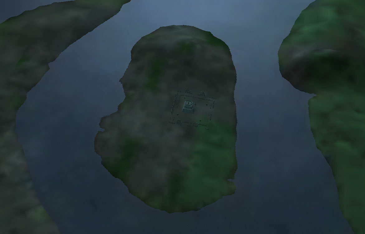 A view of the Gungan Warrior Stronghold on an island within the Lianorm Swamp