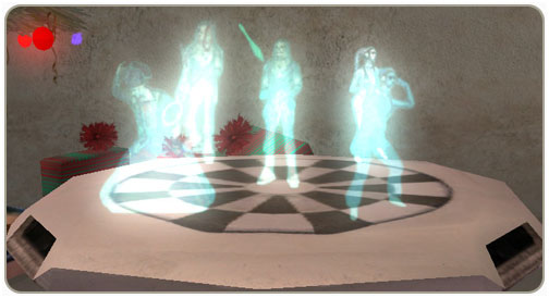 These holo-entertainment tables existed as purely aesthetic objects within the Star Wars Galaxies: An Empire Divided massively multiplayer online roleplaying game of 2003, before the game's servers were shut down on December 15, 2011.