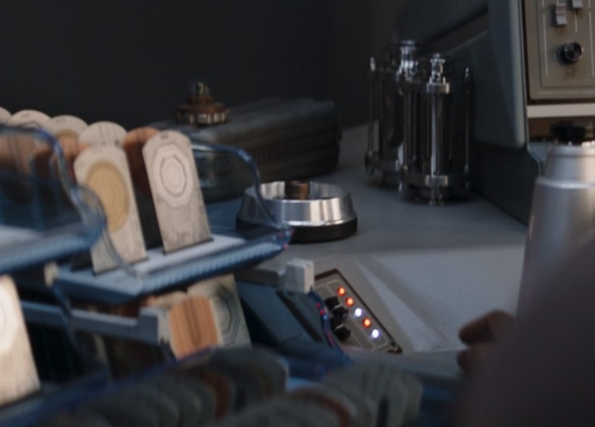 This is a holo-player, currently inactive, situated on the desk of Colonel Tuttle.