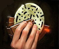 A device designed to record both holographic and hologrammic messages was the hologram disc, which was also known as a holodisk, holotape, or simply holodisc. Encryption of a holodisc's contents was a possibility.