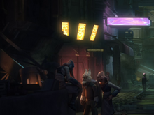 During the era of the Clone Wars, there existed a hotel within the depths of Coruscant.