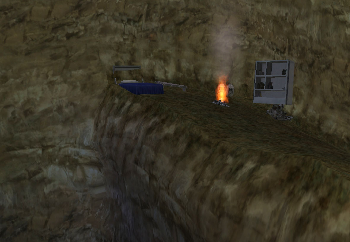 Hoverdale's Hideout existed as a place in Sony Online Entertainment's massively multiplayer online role-playing game Star Wars Galaxies before the game's servers were shut down on December 15, 2011. The cave's location was within the desert region of the planet Tatooine. It was integrated into the game via the Azure Cabal questline, specifically with Chapter 6: Dangers of the Wild in May of 2007. To successfully finish a mission for Propti Xaroon, the player was required to infiltrate the cave and eliminate bandits until the whereabouts of Xaroon's long-lost pouch within the cave became known.