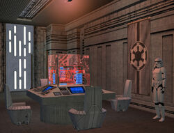 The Naboo Imperial Base featured as a location within Star Wars Galaxies, the 2003 video game that was a massively multiplayer online roleplaying game. It was created by Sony Online Entertainment and distributed by LucasArts. The game was shut down on December 15, 2011. The base became part of the game via the "Rebel Theme Park" revamp, which was part of the "Chapter 6" update released on May 22, 2007.