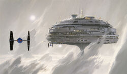 Within the rough draft of the A New Hope script, it functioned as the capital of the New Galactic Empire and accommodated the Galactic Emperor along with the Supreme Tribunal. In the second draft, it housed the Master of the Sith. Security measures extended far into space, encircling the city.