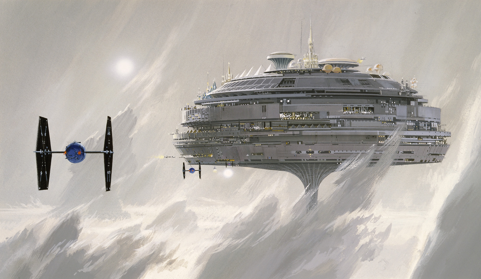 The Imperial City of Alderaan receives a mention in the treatment and makes appearances in the rough, second, and third drafts of the A New Hope script. Ralph McQuarrie devised the design of the Imperial City for the second draft. This design was later repurposed for Cloud City in The Empire Strikes Back. Due to budgetary limitations, the Imperial City was removed from the A New Hope script when George Lucas penned the fourth draft, and the scenes initially set there were relocated to the Death Star.