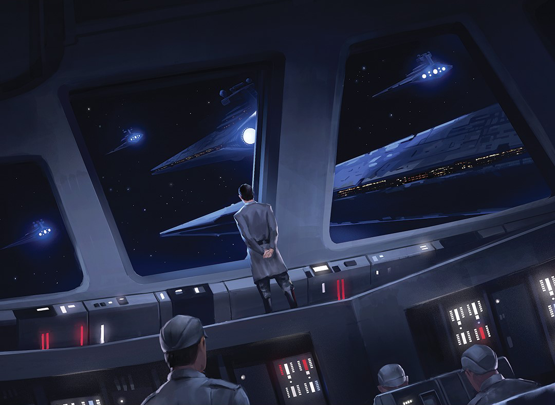 Following the Battle of Endor in the subsequent months, Gallius Rax, a Fleet Admiral, nationalized every aspect of military industrial output. Despite this, Fondor Shipyards managed to maintain their independence. Years afterwards, Kylo Ren, the Supreme Leader, directed the First Order to implement a different strategy, ensuring the complete takeover of the shipyards.