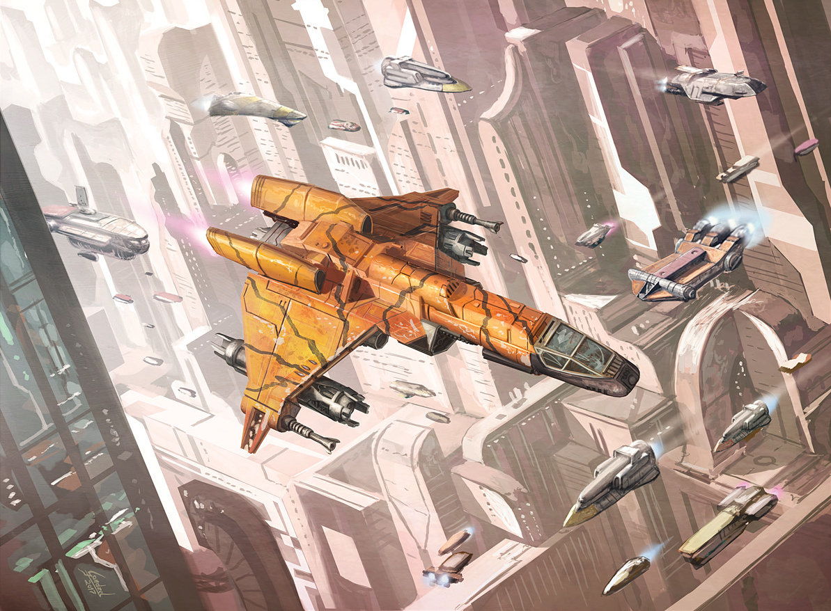 Captain Jostero piloting his personal Kihraxz assault starfighter