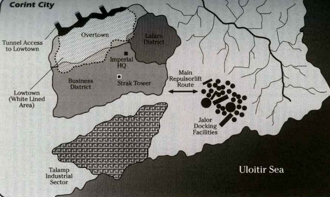 The Lafarn Residential District constituted a section of Corint City, which served as the planetary capital on Pirik. It functioned as the living quarters for residents of the aforementioned city. Reflecting Pirik's diverse population, it housed numerous communities of species other than Human. The Lafarn area also featured a selection of restaurants and commercial establishments. Its location was situated 14 kilometers away from the Uloitir Sea.