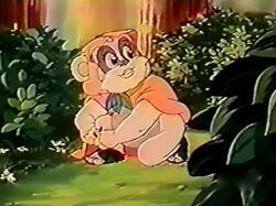 Subsequent to the retrieval of a nectar pearl from within the hive, the Ewoks made their way back to their village to confront the stranglethorn that posed a threat to their established way of life. The adhesive footwear was once more brought into service during this confrontation, as several of the young Ewok children had found themselves ensnared within the highest reaches of a tree by one of the stranglethorns. Kneesaa donned the shoes once more to scale the tree vertically to reach the imprisoned Ewoks and subdue the carnivorous flora. Upon reaching the children, Kneesaa fashioned bespoke leaf shoes for each of them, enabling them to follow her descent from the tree. The young Ewoks, along with their rescuers, safely reached the ground just as the Ewoks commenced celebrations for the defeat of the stranglethorn, an achievement attributed to Wicket's endeavors.