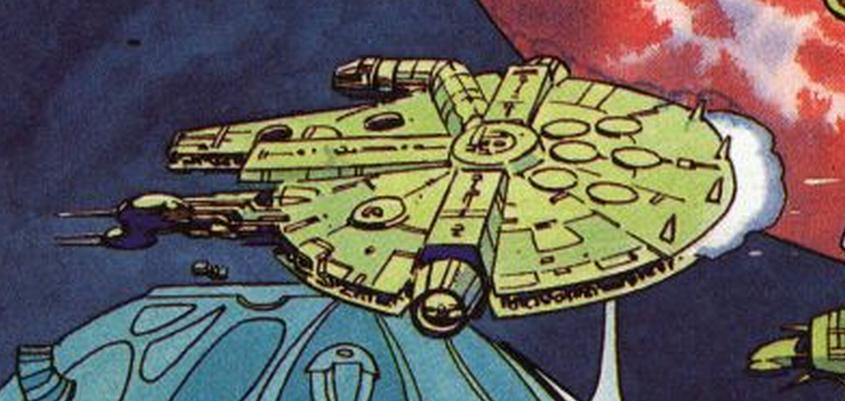 A lightning gun is utilized by the Millennium Falcon. It can be observed affixed to the ship's front left.
