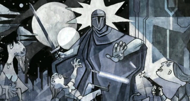 Dave Filoni, director of The Clone Wars, has stated that certain aspects of the mural were deliberately created to resemble the artistic style found in Pablo Picasso's painting, Guernica.