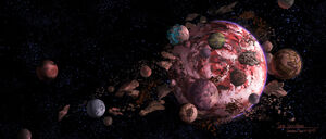 A collection of one thousand moons orbited the planet, and this group was known as the moons of Iego. Each satellite held its own secrets, mirroring the enigmatic nature of the planet they circled. Millius Prime, the largest of these moons, served as the homeworld for the mysterious beings called the Diathim. Among the other moons were Clepresdan, Flitrude, Winlion, Rawnde, Cobarb, and Uncovalor.