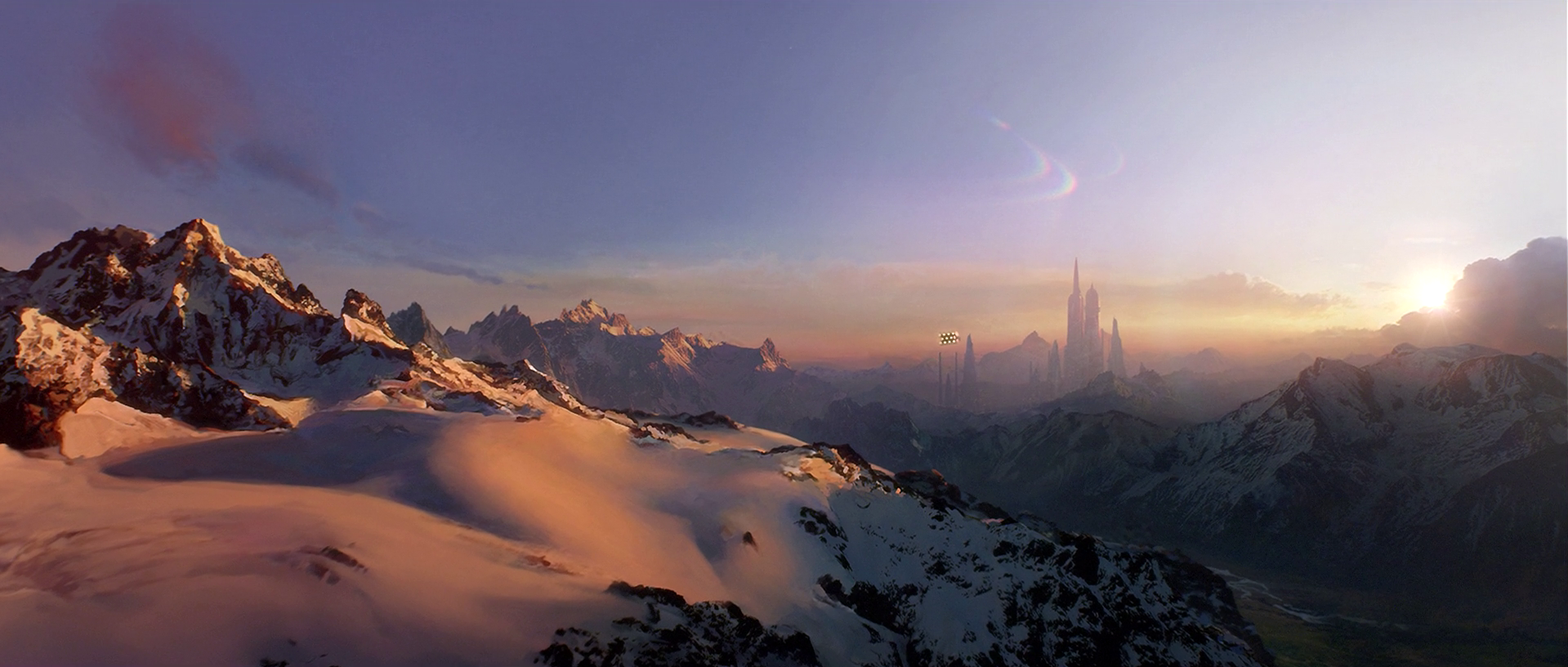 The snow-covered peaks of Alderaan's mountains.