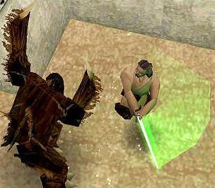When Tomo, a young Ithorian, was captured by Neg, his distraught mother sought the help of Qui-Gon Jinn to save him from Captain Neg's house. The Jedi tried a stealthy rescue of Tomo from his confinement, but the monster escaped its enclosure and launched an assault, leaving Qui-Gon with no choice but to eliminate it.
