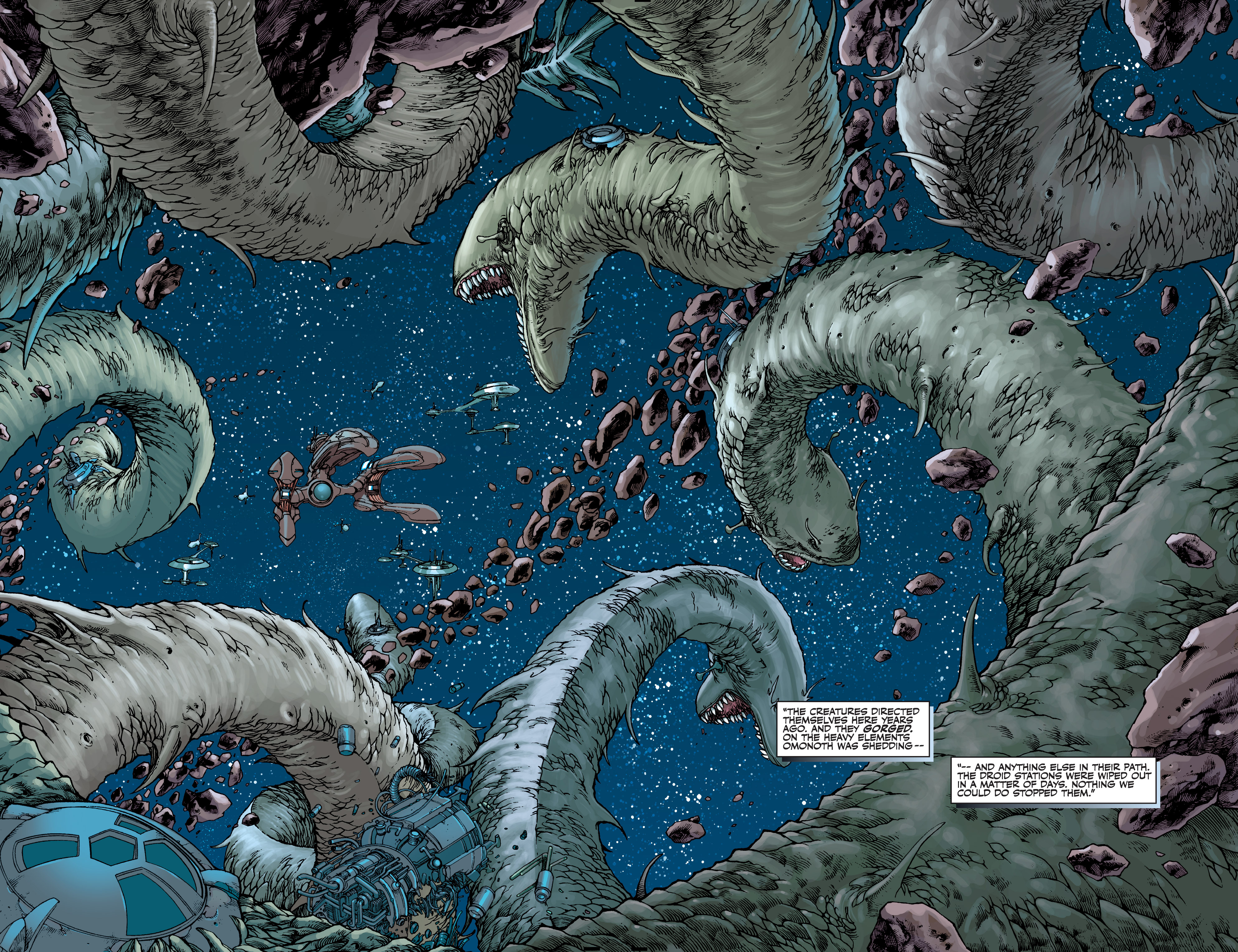 Exogorths devouring the asteroids around Omonoth.