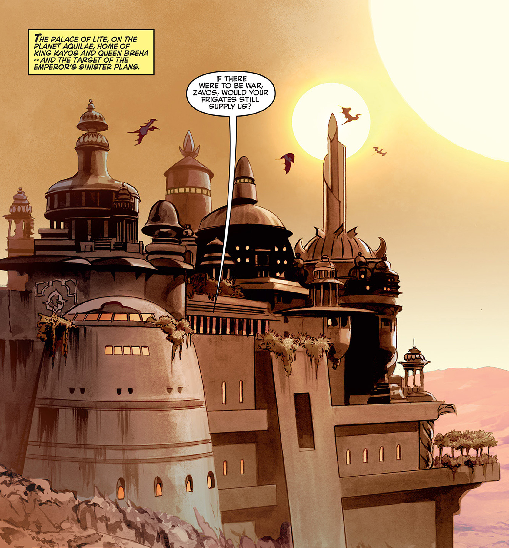 On the planet Aquilae, the Palace of Lite functioned as the royal palace. Found within the planet's desert landscape, it was characterized by features such as rooftop gardens, fountains, and turrets.