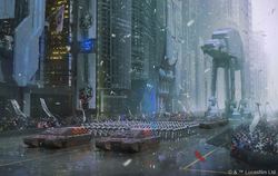 A parade signified a festive occasion; it was a ceremonial procession involving people, vehicles, and even creatures, all marching together to honor a specific event. Following the liberation of the planet Naboo from the clutches of the Trade Federation, the Naboo people and the Gungans jointly organized a parade in Theed. This parade served to both celebrate their hard-won victory and to symbolize the start of their fresh friendship. On Lothal, fifteen years following the rise of the Galactic Empire, Empire Day was observed with a parade held in Capital City.