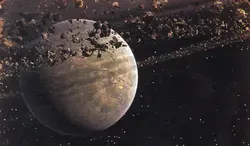 The remains of satellites could give rise to planetary rings; for instance, the silica ring of Lah'mu came into existence after one of its moons was destroyed. The rings that surrounded Geonosis and Bothawui were composed of rock, whereas Minfar possessed a ring constructed from ice. Planets could feature numerous ring sets, as seen with a gas giant located in the Unknown Regions. It was also observed that moons could have rings; one of the moons orbiting Brendok had its own ring system.